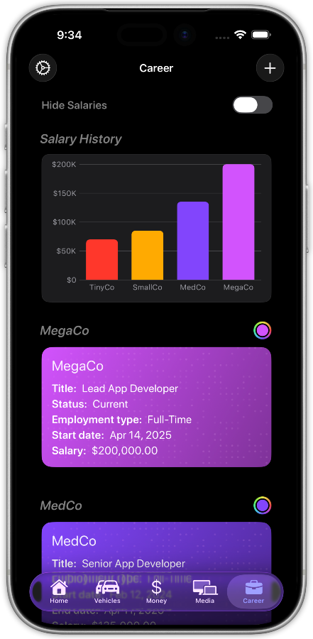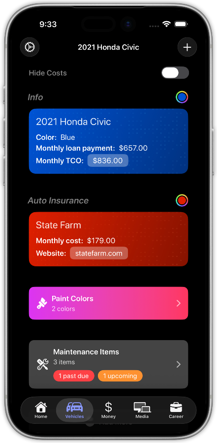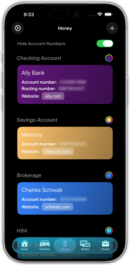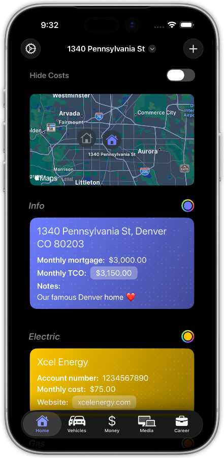 YouHQ is your personal command center for life's important details. Track everything from home maintenance and vehicles to career history and where all of your money is, all in one place.